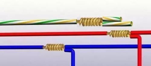 第三种是分支接法,这种情况要环剥干线的绝缘皮约1公分多,然后用支线去缠至少5圈,铰紧——一定要用钳子铰紧,以免后期松动。